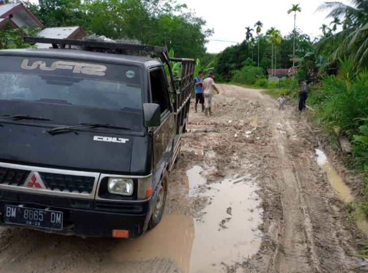 Pada sopir truk maupun PicUp L300, yang mengangkut bahan sawit hasil petani kebun masyarakat selasa kemarin sangat memprihatinkan perjuangan mereka untuk melepaskan jebakan lumpur pada jalan yang rusak, tepatnya JL.PU parit Joko antara parit 2 Tanjung Kapal.