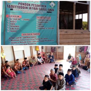 Lanjutnya lagi, niat kami membangun Ponpes di sini agar berkembang maju dengan baik dan positif yang bermanfaat. Apa yang menjadi kekurangan maupun fasititas ponpes kita disini masih banyak kekurangan dari segi fisik maupun sarana prasarana dan masih ala kadarnya (apa adanya saja). Insya Allah lewat Pemuda Pancasila demikian ini, Ponpes kita ini bisa dapat dibangun dengan baik dan kesempurnaan sarana prasarana nya, para Santri di sini sudah mencapai 43 orang, mungkin kedepannya lebih ramai lagi,namun saat ini ada tidak hadir karena bulan puasa begini mereka mungkin lelah dan ketiduran, sebut Pimpinan Ponpes ” Mi’raj Abdul Rojak.