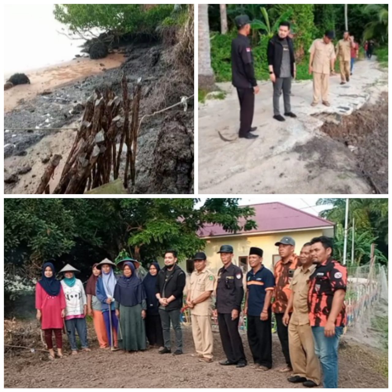 Damfak abrasi Pantai Abuk Teluk Tungku Desa Darul Aman Kecamatan Rupat, peninjauan Secara perdana Camat Rupat,Susydy MR, S.STP, M.Si bersama timnya langsung turun ke Lokasi pantai yang mengalami tekanan ombak pasang laut dari 4 penjuru mata angin bertiup yang saling bergantian pada saat air laut pasang sehingga gelombang tinggi.