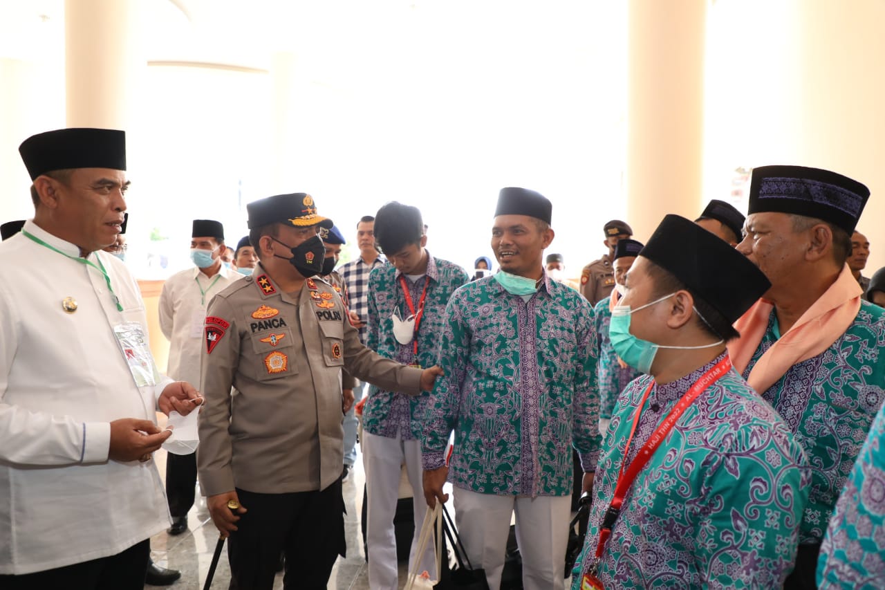 Kapolda Sumut, Irjen Pol. Drs. R. Z. Panca Putra S, M.Si menghadiri pemberangkatan Jemaah Calon Haji Kloter I Embarkasi Medan Tahun 1443/2022 M