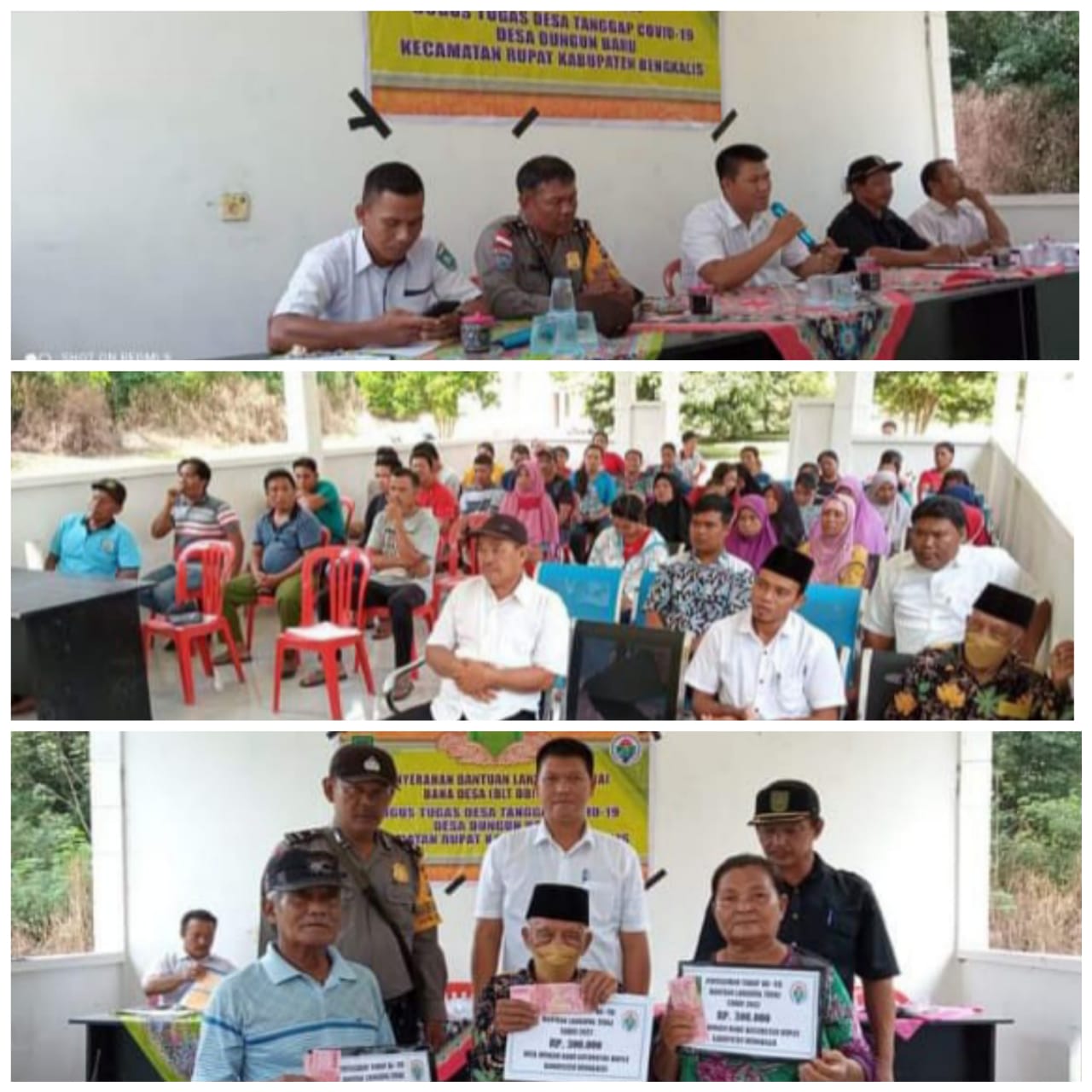 Kepala Desa Dungun Baru Kecamatan Rupat Acheng,S.Pd, telah menyalurkan Bantuan Langsung Tuanai(BLT) Dana Desa (DD) tahun 2022 tahap- VII kepada 111 Keluarga Penerima Manfaat (KPM) secara simbolis dilaksanakan di auala Kantor pertemuan Desa Dungun Baru, Rabu 27/7/2022,pagi.