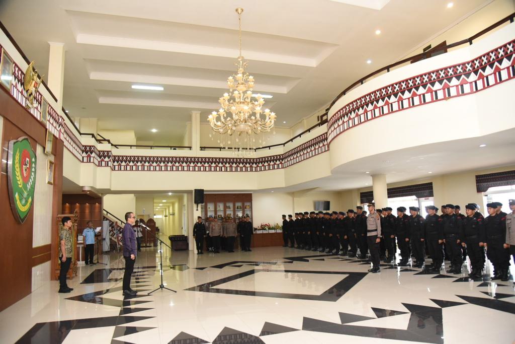 TAPSEL, Pindo Online- Kepolisian Resort (Polres) Tapanuli Selatan (Tapsel) menarik ratusan personel gabungan yang bertugas mengamankan pelaksanaan pemilihan kepala desa (Pilkades) serentak Tahun 2022 yang di ikuti 107 desa di 15 kecamatan yang ada di wilayah Kabupaten Tapsel, pada Apel Pengembalian Pasukan BKO Pengamanan Pilkades Kabupaten Tapsel di Lobby Kantor Bupati setempat, Kamis (15/12).