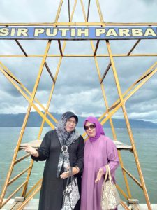 Ibu Bendahara Koran Pindo Hj Darmasiah Ritonga didampingi simpatisannya seperti Ibu Rafiah Daulay SPd, Ibu Marina Marpaung dan Kabiro Asahan Pak Surya, terlihat gembira dengan wajah ceriah menikmati panorama indahnya Danau Toba.