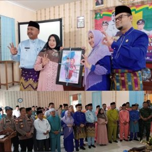 Dilanjutkan pemberian tanda Cindera mata buat Camat Lama berlangsung saling bersalam salaman dan poto bersama**(Zaini/tim)