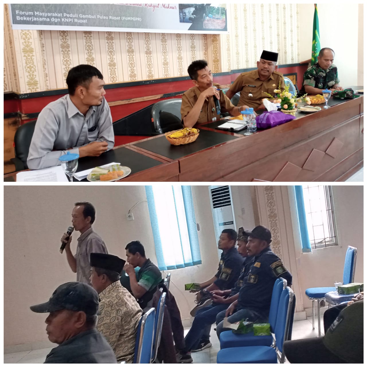 Diskusi pengelolaan lahan gambut di Kecamatan Rupat ini sama-sama kita ketahui Pulau Rupat hampir 70% kawasan lahan gambut, sebut Camat.