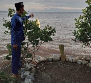 Lanjutnya,Saya amati sekitar makam tua,makam lainnya juga banyak dalam semak itu,tetapi banyak batu nisan yang makamnya sudah terjun kelaut ratusan meter ketengah laut sana bahkan dulu diriwayatkan belum ada nama laut tetapi Sungai, wahhh,,, luar biasa, namun saat ini menjadi laut sejauh mata memandang. Satu-satunya makam dibibir pantai bisa bertahan dari gerusan ombak selama ini,juga aneh dan perlu difahami,sebutnya.