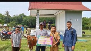 Penyerahan 8 ekor sapi tersebut juga dihadiri oleh BPD, Perangkat Desa, dan warga yang mendapatkan bantuan Sapi.