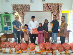 Pemerintahan Desa (Pemdes) Teluk Lecah Kecamatan Rupat Kabupaten Bengkalis membagikan Sembako dari Dinas Sosial kepada Anak Yatim dan anak dari orang tua kurang mampu berlangsung pelaksanaannya di Aula Pertemuan Kantor Desa Teluk Lecah, Jum’at 21/7/2023,pagi.
