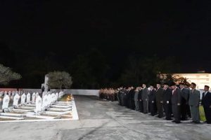 Bupati Tanah Datar Eka Putra, SE, MM. bersama Ketua DPRD Tanah Datar H. Ronny Mulyadi Dt Bungsu, dan Forkopimda, Sekda Iqbal Ramadi Payana mengikuti Upacara Apel Kehormatan dan Renungan Suci yang digelar di Taman Makam Pahlawan (TMP) Bahagia Batusangkar, Kamis dinihari (17/8/2023)