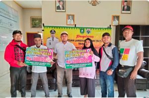 Saat kegiatan penyerahan BLT-DD tersebut juga turut dihadiri Kaurdes, Iwan Santoso, Kasi Kesra” Ali Amran”, Kepala Desa “Jamil, BPD, Bendahara Desa,, para Staf, Lembaga Desa serta perangkat Desa lainnya juga sejumlah Keluarga Penerima Manfaat.