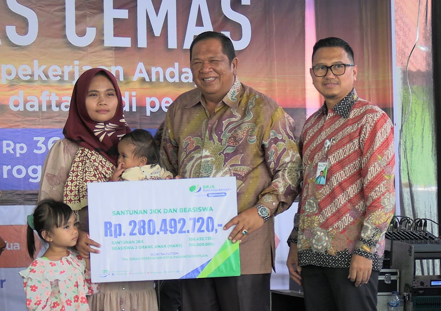 “Pentingnya keikutsertaan dalam BPJamsostek, maka saya telah mendaftarkan 5000 pekerja dengan resiko tinggi di lingkungan Pemerintah Kota Padangsidimpuan yang saat ini sudah mencapai tingkat 100 % perlindungan.”