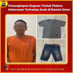 Sat Res, Polres Tanah Datar Sumbar berhasil menangkap tersangka penganiayaan anak dibawah umur, (20/10/2023).