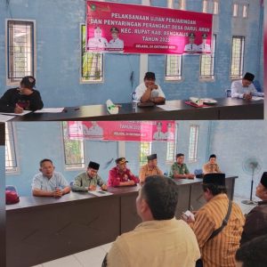 Pemdes Darul Aman Kec. Rupat Kab. Bengkalis -Riau membentuk Panitia penjaringan dan Penyaringan Sleksi 3 Orang kandidat Sekdes menjadi peserta testing yang dipimpin Ketua Panitia Ibu” Maria” pada Sleksi untuk menjadi Sekretaris Desa di acara pemilihan seorang Sekretaris Desa Darul Aman yang selama beberapa waktu akhir-akhir ini belum terwujud adanya dan hingga dipenghujung tahun 2023 dapat dilaksanakan pada masa Pemerintahan Desa tersebut dipimpin Pj Kades Darul Aman” Nur Azmi” yang baru saja diangkat menjadi Pj Kepala Desa.