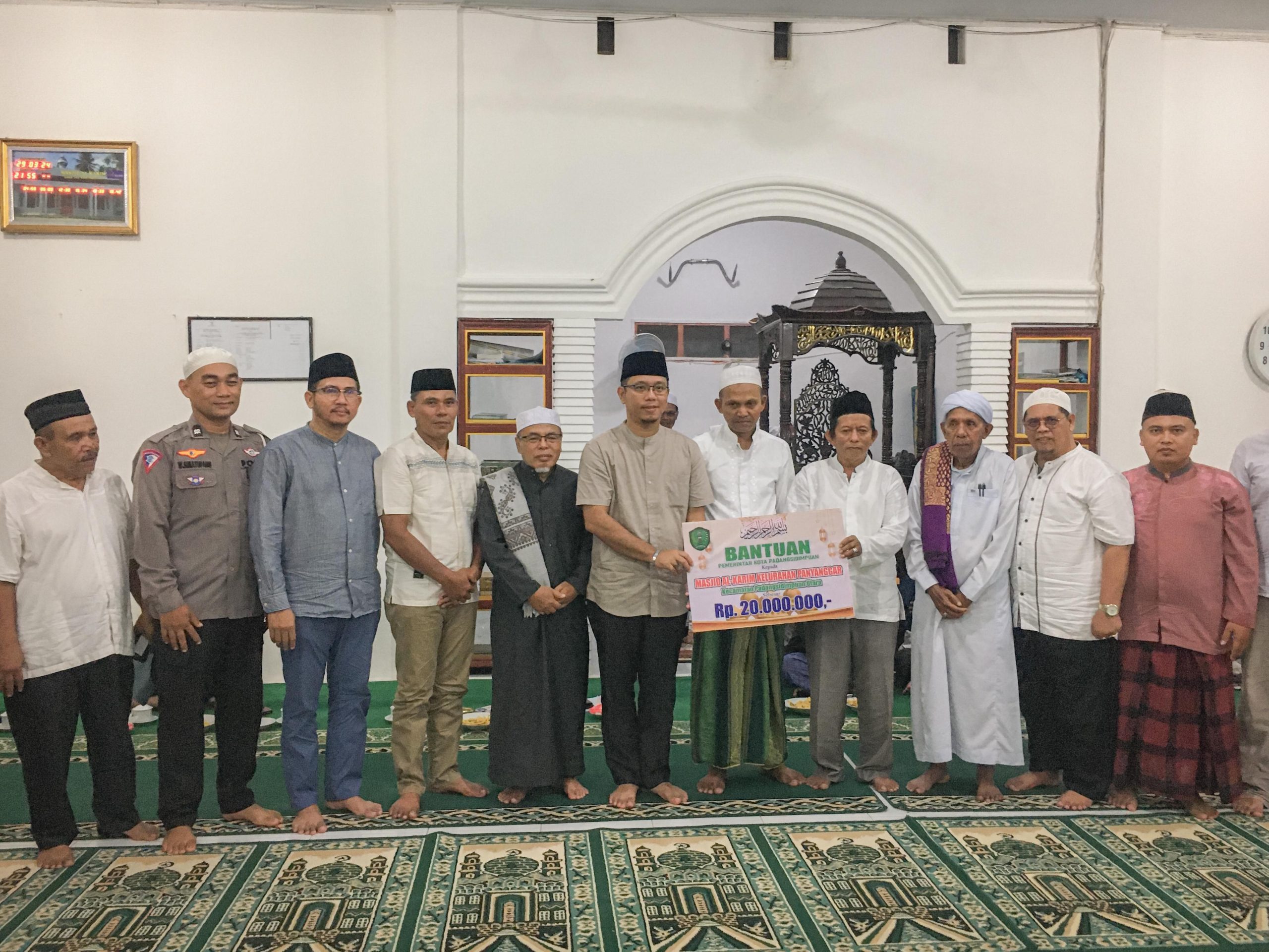 Ketua BKM Mesjid Al Karim Panyanggar Badran Tanjung menyampaikan rasa terima kasih atas bantuan yang diberikan oleh Bapak Wali Kota.