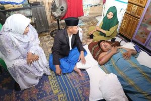 Walikota H. Waris Tholib bersama Ketua TP PKK Kota Tanjungbalai Hj Fatiah Haitami menjenguk Ahmad Rolel di Jalan Merak Kelurahan Beting Kuala Kapias, pada hari Rabu tanggal 10/4/2024 pagi.