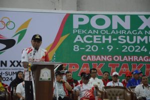 Penjabat Bupati Aceh Timur Amrullah membuka secara resmi cabang sepak takraw pada ajang Pekan Olahraga Nasional ( PON XXI Aceh – Sumut ). Acara ini dikemas dalam bentuk opening ceremony yang dihelat di gedung Idi Sport Center ( ISC), Jum’at sore, 6 September 2024.