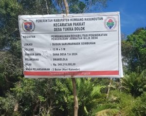 Proyek pembangunan Jalan Rabat Beton di Desa Tukka Dolok Kec. Pakkat Kabupaten Humbahas Sumut, dipertanyakan warga, rentan korupsi, karena di bangun tanpa papan informasi alias siluman , demikian informasi yang dihimpun jurnalis 27/9-24 dari TKP.