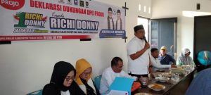 Peyampaiyan Bapak Richi , rekan-rekan pers para keluarga besar Projo Kabupaten Tanah Datar yang kami bangga pertama-tama sama-sama kita pecahkan puji syukur ke hadirat Allah subhanahu wa ta’ala dengan sama-sama kita mengucapkan Alhamdulillah Allah masih pertemukan kita pada kesempatan sore hari selawat beserta salam pada junjungan kita nabi besar muhammad shallallahu alaihi wasallam yang insyaallah sahabat beliau yang selalu kita nantikan di hari akhir telah amin amin bapak-bapak ibu-ibu relawan Projo yang kami banggakan itu pertama kami mengucapkan rasa terima kasih bagaimana dari DPT Projo akan memberikan amanah menyampaikan dukungan kepada saya Rici Aprian yang akan berpasangan dengan Dodi karson sebagai calon bupati &dan wakil di kabupaten Tanah datar ini.