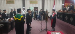 Prosesi pelantikan dan pengucapan sumpah/janji pimpinan DPRK Aceh Singkil yang dilakukan oleh Ketua Pengadilan Negeri Singkil, Yovi Wijaya, SH, dilaksanakan dalam rapat paripurna Dewan setempat, Senin, (30/9/2024).
