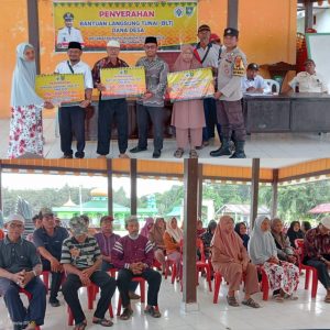 Kegiatan dilanjutkan penyerahan BLT-DD secara simbolis oleh Sekretaris, Ketua BPD dan Bhabinkamtibmas kepada KPM berlangsung Tertib dan lancar (Zaini/tim)