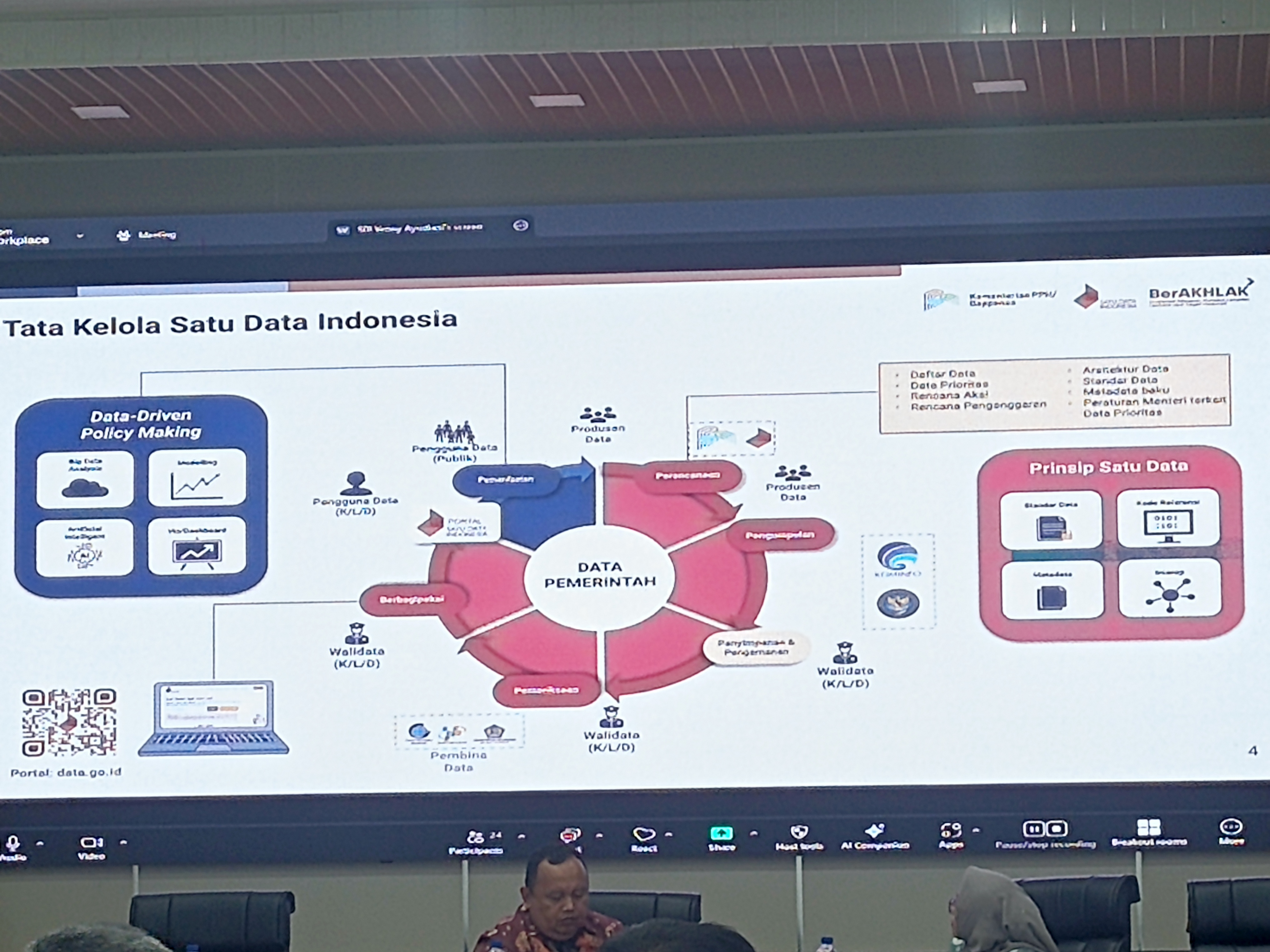 ‎Tata kelola Satu Data Indonesia diharapkan berjalan dengan keterlibatan beberapa elemen. Data pemerintah diawali dengan Perencanaan seperti daftar data, data prioritas, rencana aksi, dll oleh produsen data, kemudian pengumpulan data oleh Kominfo. Selanjutnya digunakan oleh walidata penyimpan data dan pengguna data.